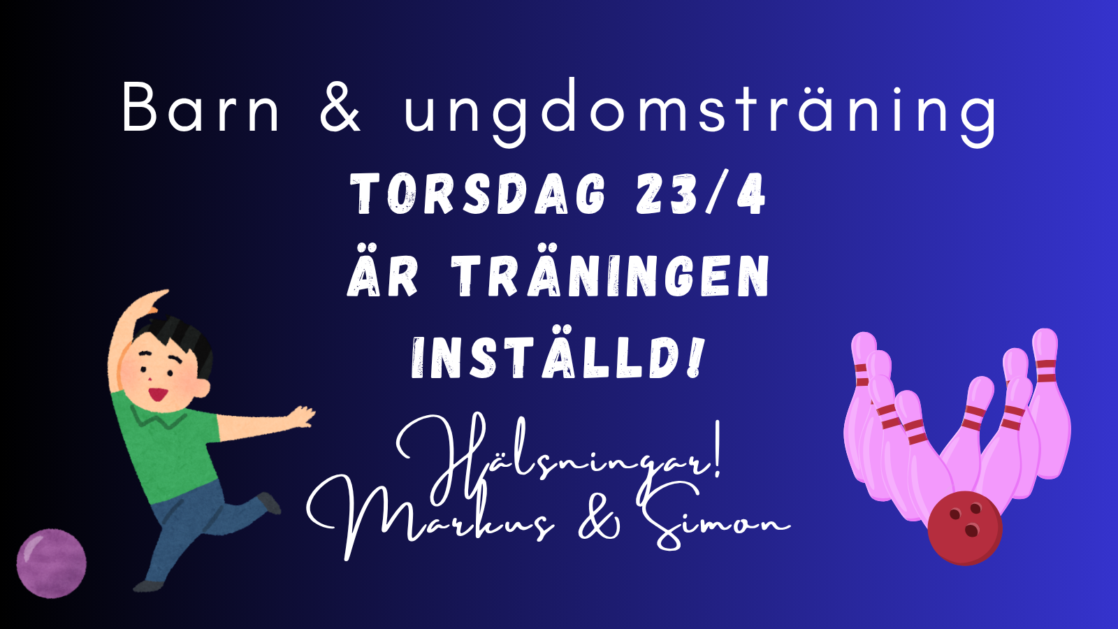 Barn- och ungdomsträningen torsdag 23 april är inställd.
